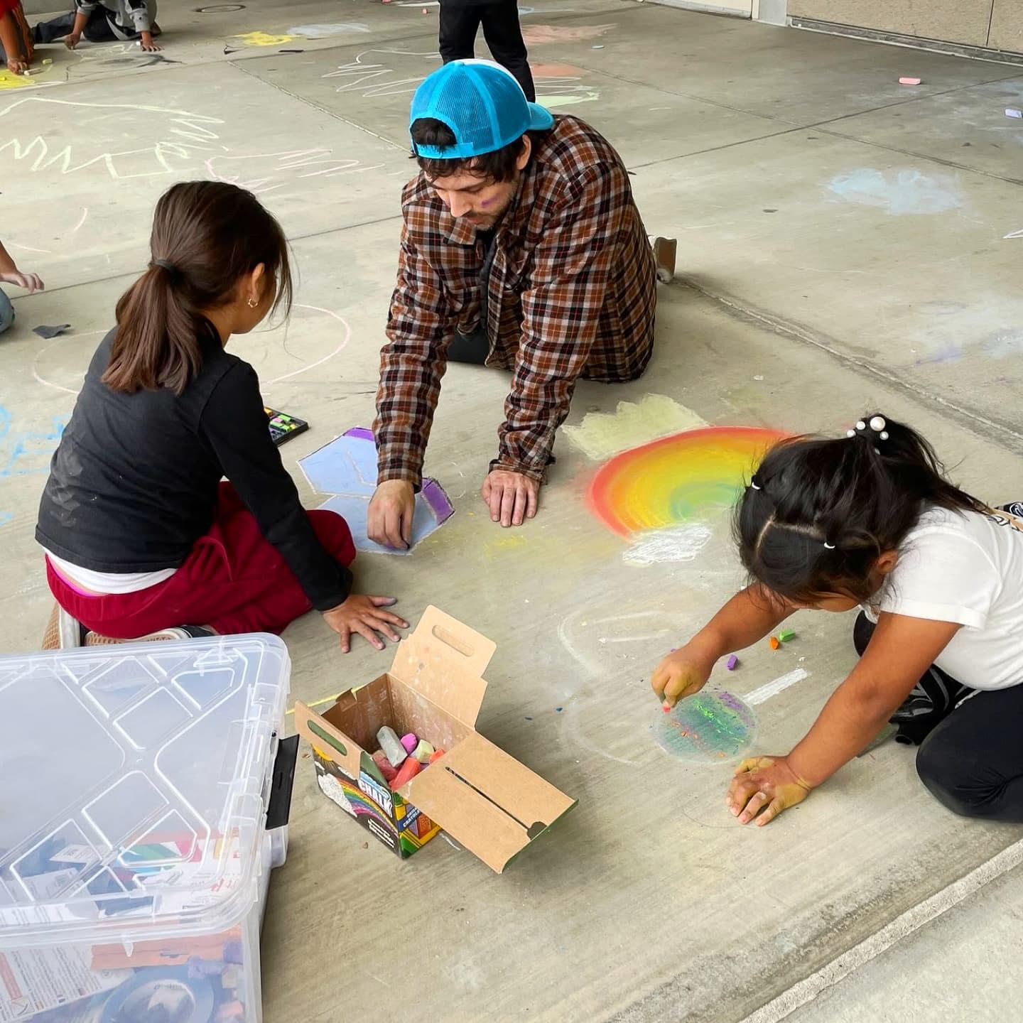 I provide hands-on instruction in chalk mural techniques, guiding elementary students through planning, sketching, and layering color to bring their designs to life. I also help students brainstorm and develop their own creative ideas, encouraging imagination and confidence in their artistic expression.