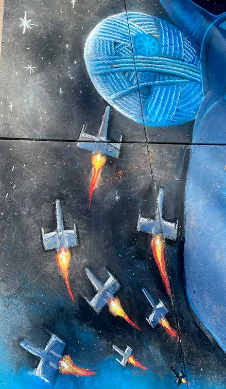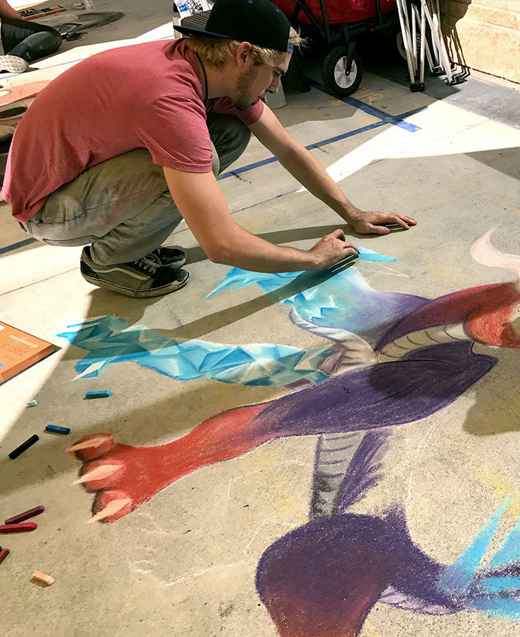 I created a large-scale dragon chalk mural for the Pasadena Chalk Festival, featuring bold color, movement, and intricate detail. The following year, the festival organizers selected my artwork to be featured on their 10-foot event banners, showcasing the piece as part of the celebration.